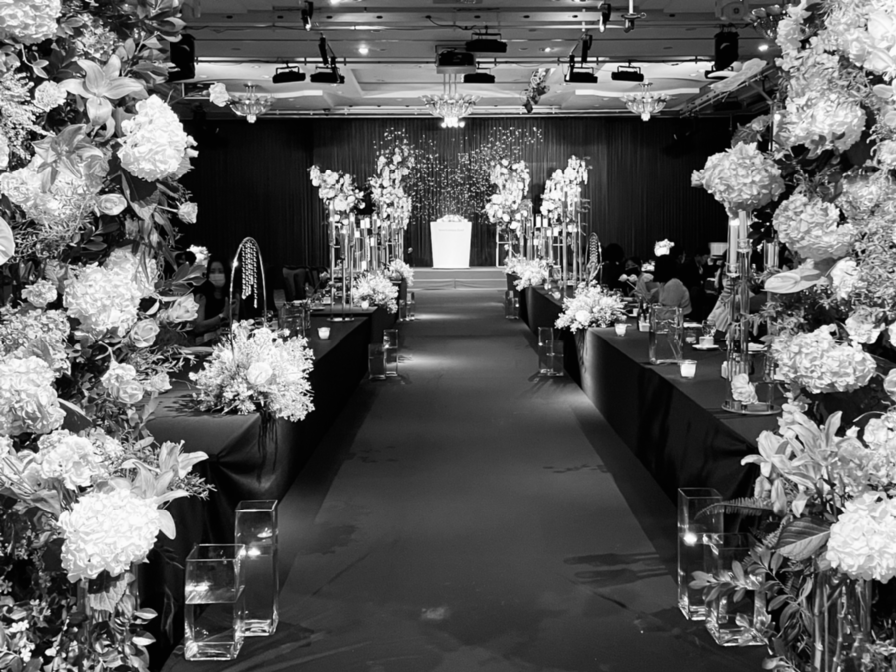 각자 입장했다가 둘이서 함께 꽃길을 걸어 나온다.