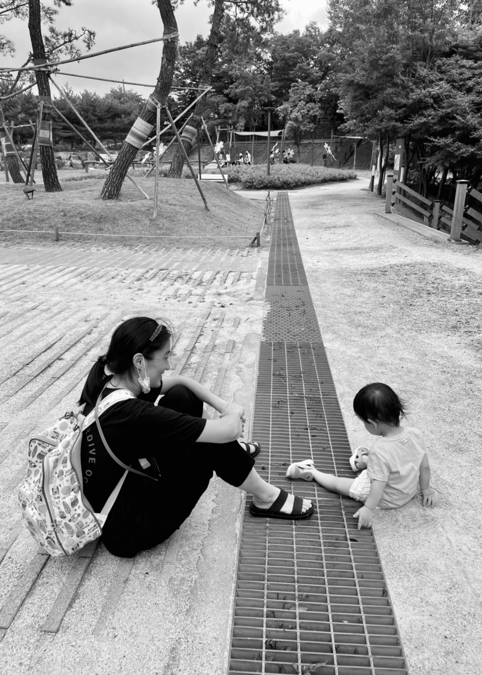 맥락 없이 바닥에 철퍼덕 앉았다.