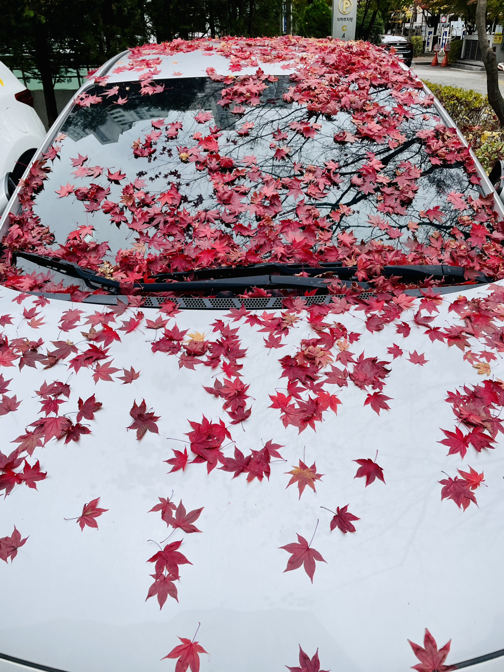 오랜만에 내린 비에 단풍잎이 우수수 떨어진 모양이다.