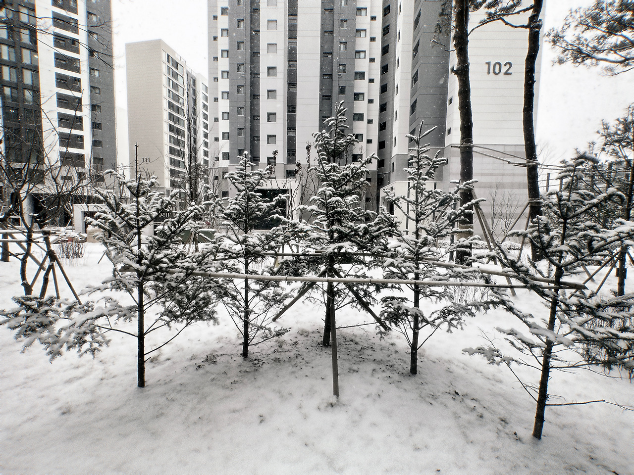 눈 오는 날, 아파트 1층에서 살면 마주할 수 있는 풍경.