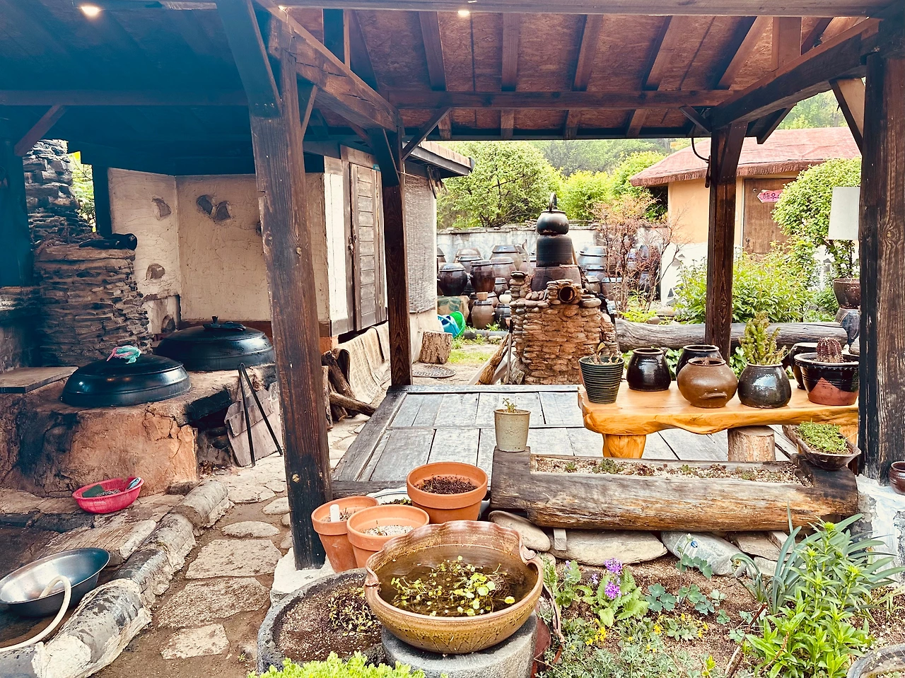 인테리어인 줄 알았는데 전부 다 사용하는 장독대, 가마솥, 아궁이였다.