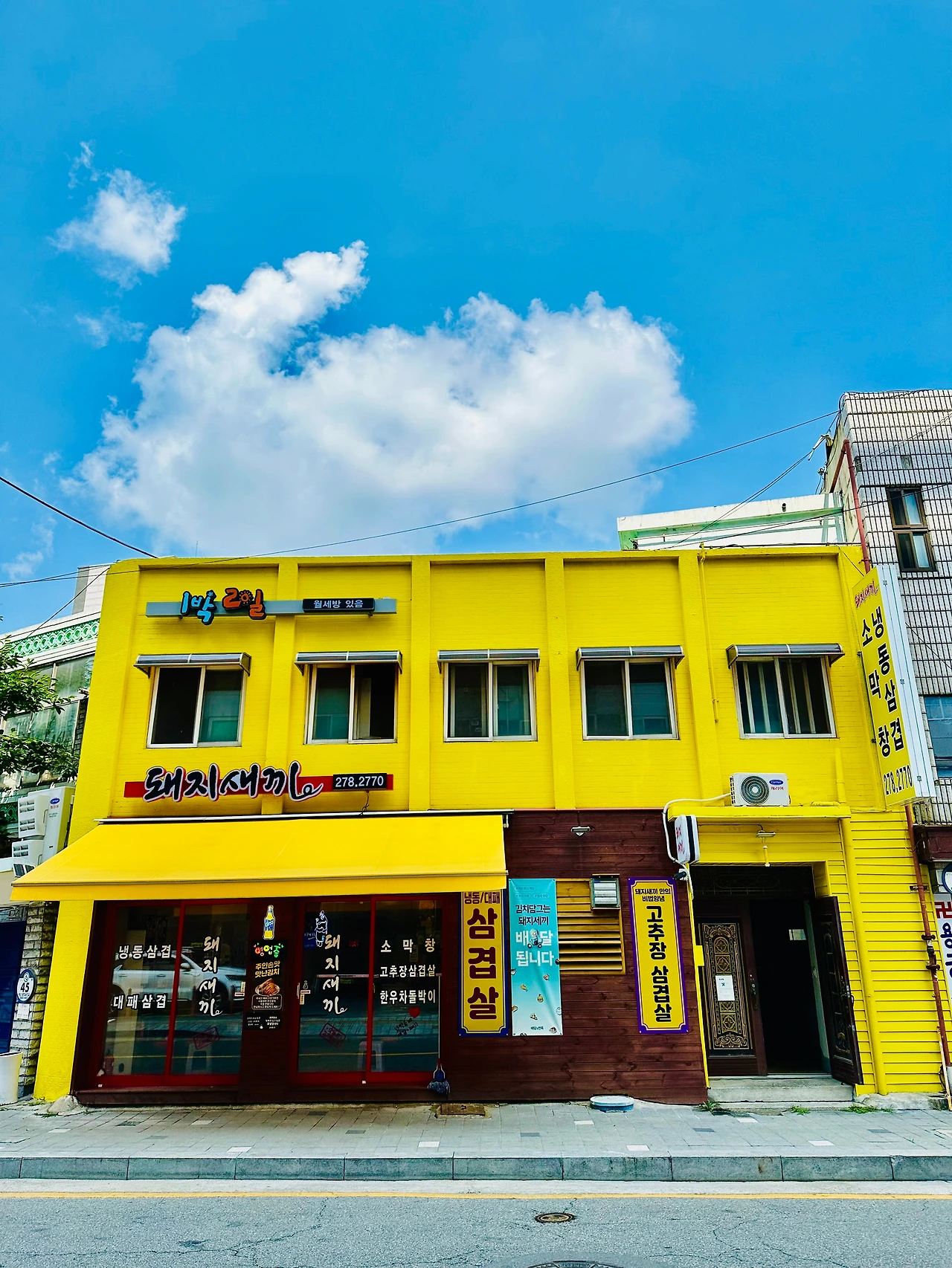 회색빛 도시에서 강렬한 노랑은 낯선 빛깔이다.