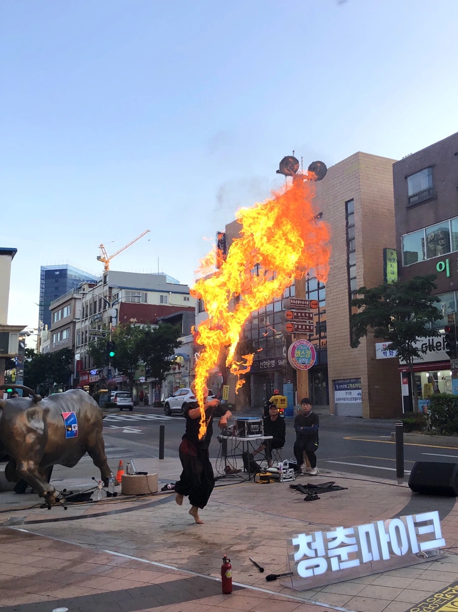 속초 로데오 거리에서 두번째이자 마지막 공연자가 불을 사용해서인지 공연 후 온몸이 땀에 범벅이다. 수고했다는 말을 건네고 철수에 동참한다. 철수를 마칠 즈음까지 옆에서 무언가를 계속 연습하고 있다. 공연 중 작은 실수가 있긴 했는데 문제가 될 정도는 아니었다. 아니 본인으로서는 만족하지 못했을 수도 있겠다.