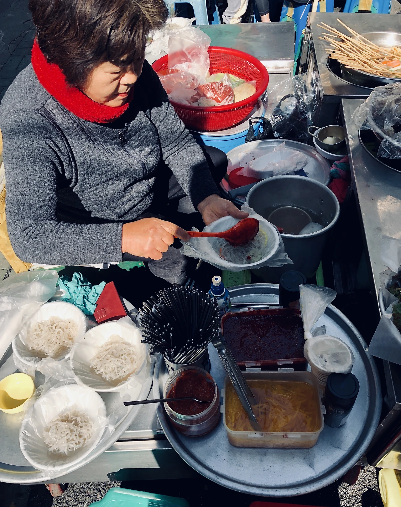 다행히 점심때도 장사를 하고 계셔서 2인분 포장을 부탁드리고, 기다리는 동안 아내가 이 집 비빔당면만 좋아한다고 말씀을 드렸다.
