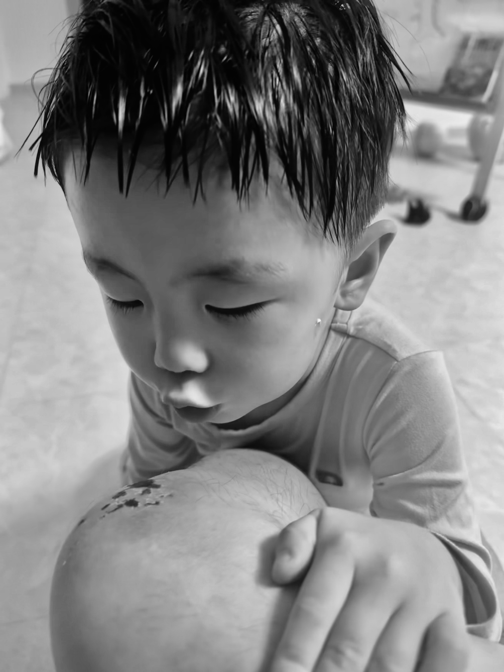 넘어져서 멍들고, 상처에는 딱지가 앉은 무릎에 아들이 ‘호~’라고 불어준다.