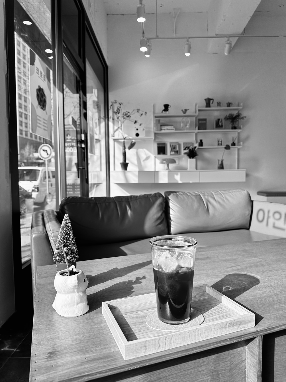 따뜻한 햇빛과 차가운 아이스 아메리카노의 조화.