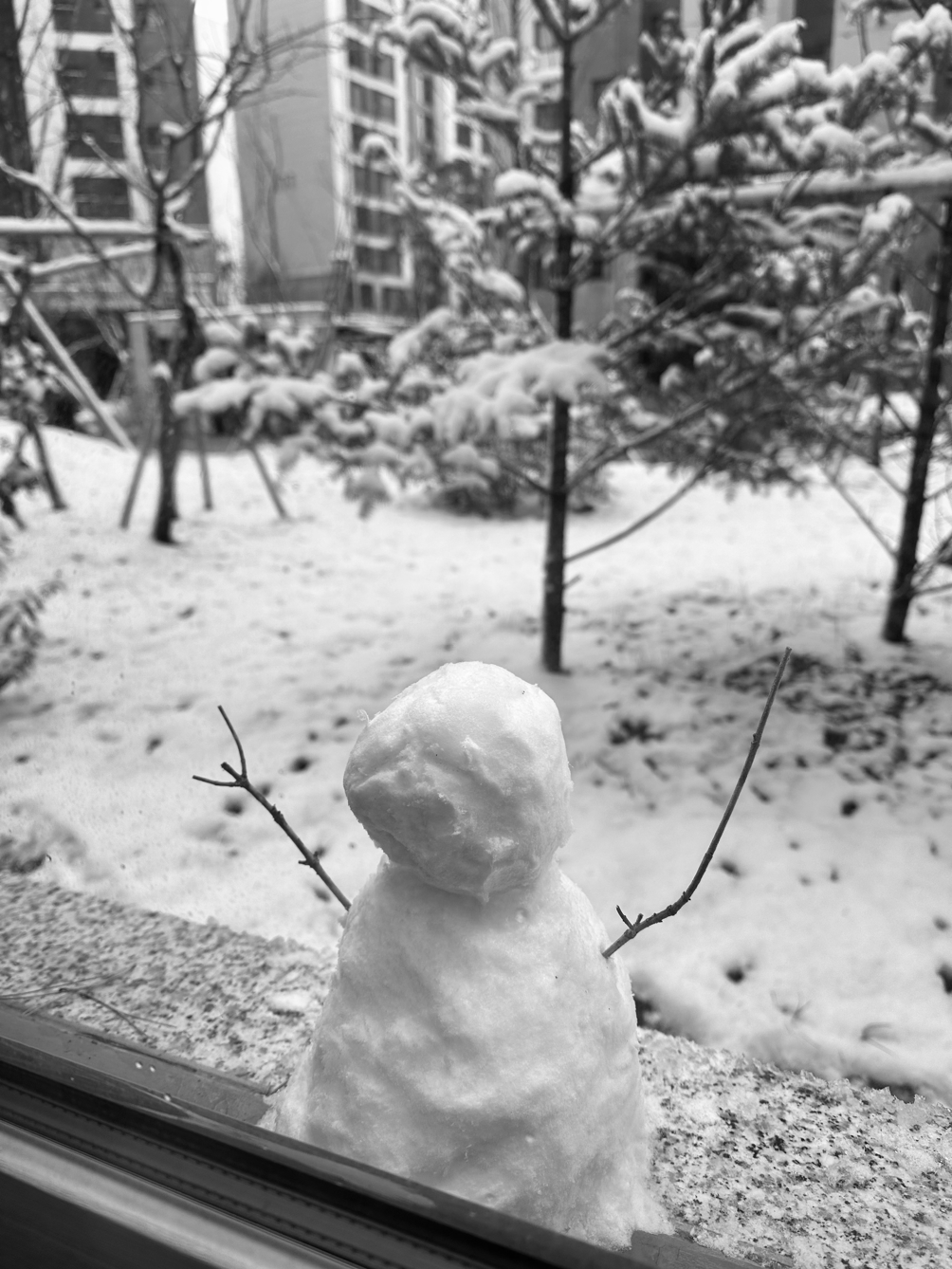 아빠 혼자서 만든 우리 집 전용 눈사람.
