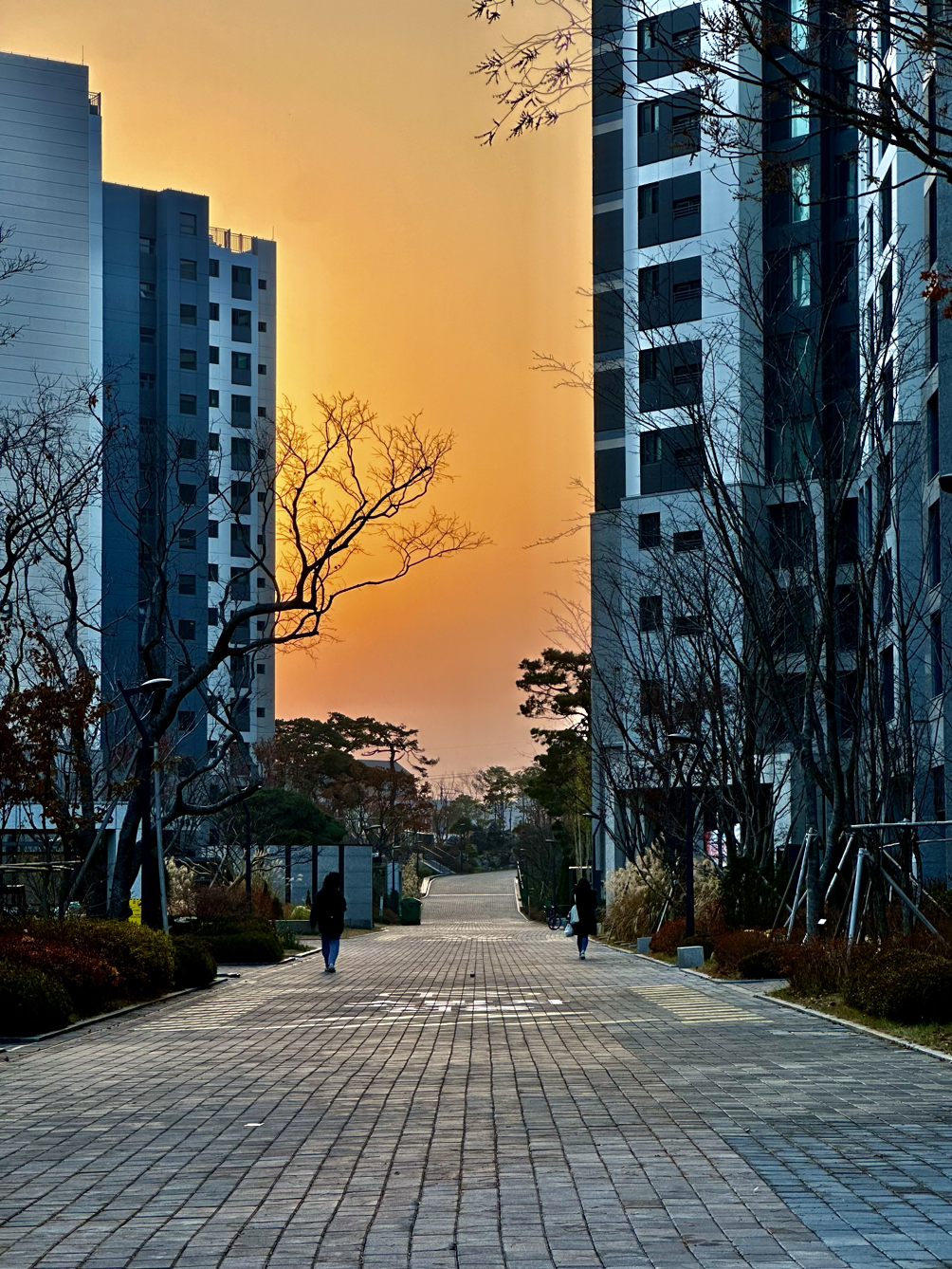 콘크리트 사이에 붉게 물드는 하늘.