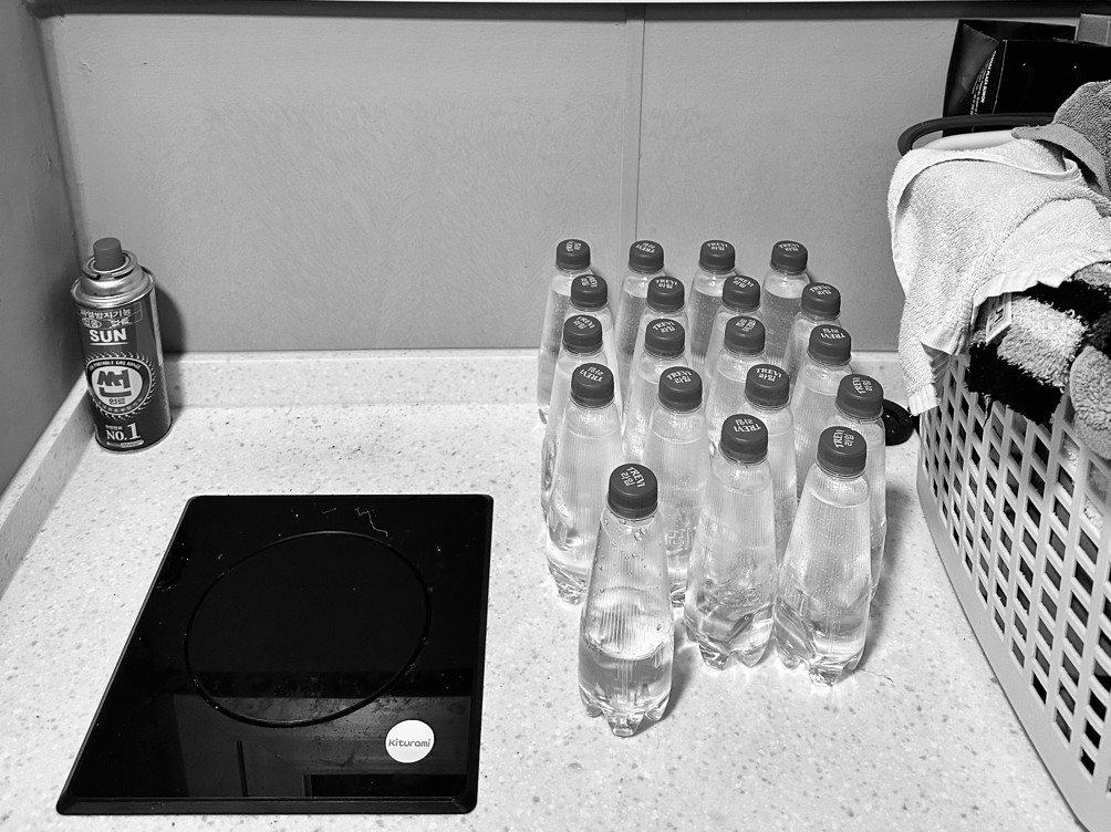 세탁실에 놓고 마시는 탄산수.