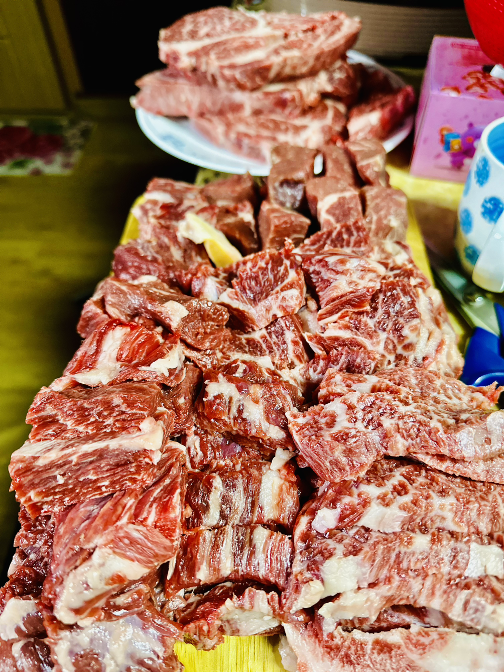 좋은 부위의 소고기를 사 와서 다 같이 구워 먹는다.