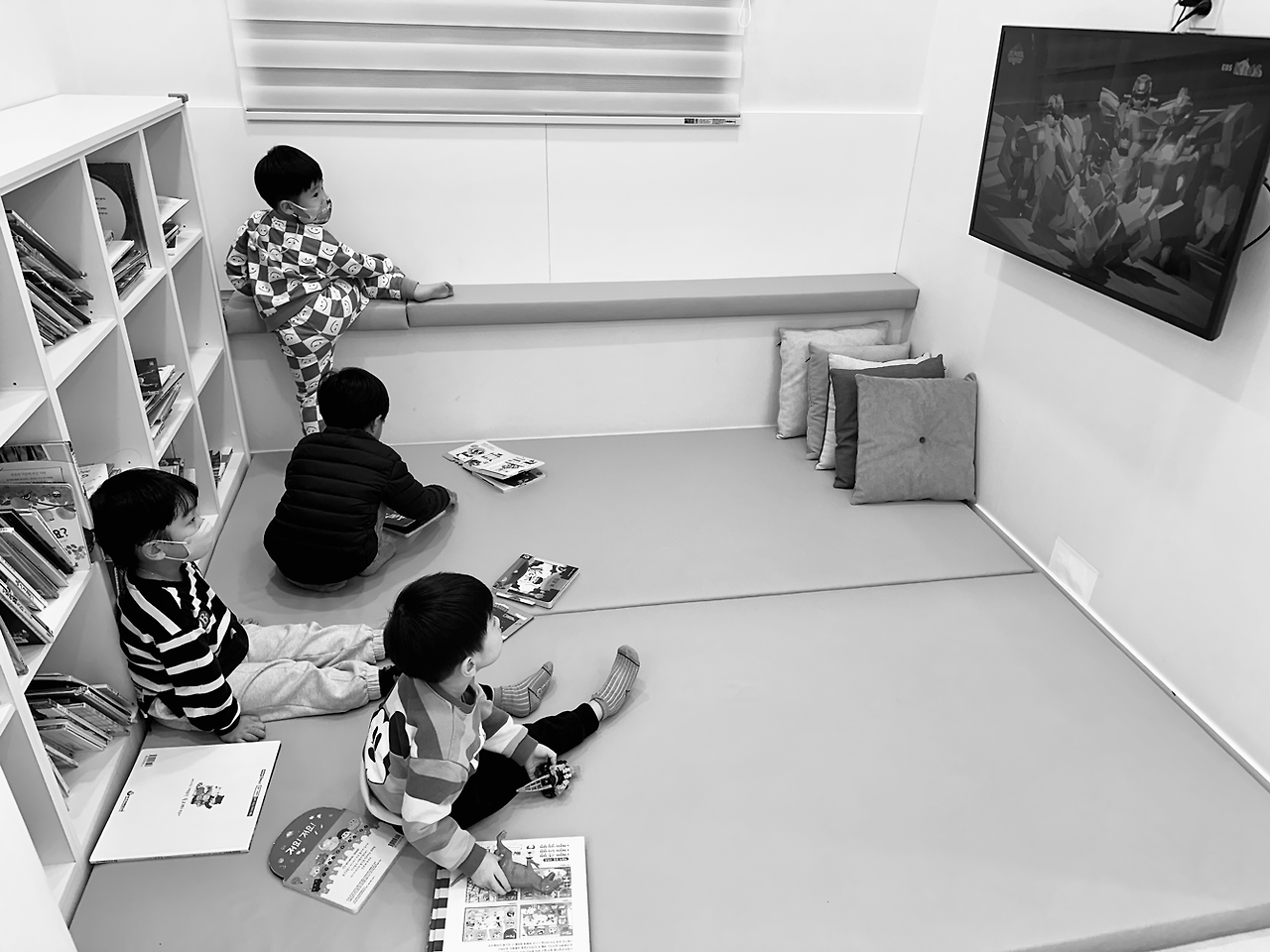 본인 순서를 보호자가 긴장된 마음으로 기다리는 동안 세상 편하게 각자 하고 싶은 걸 하고 논다.