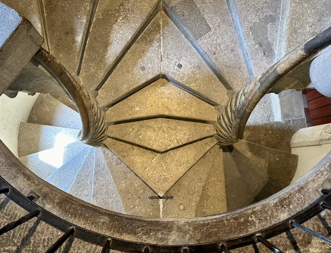 이중 나선형 계단으로 처음에는 하나인 것처럼 착시현상이 일어난다.