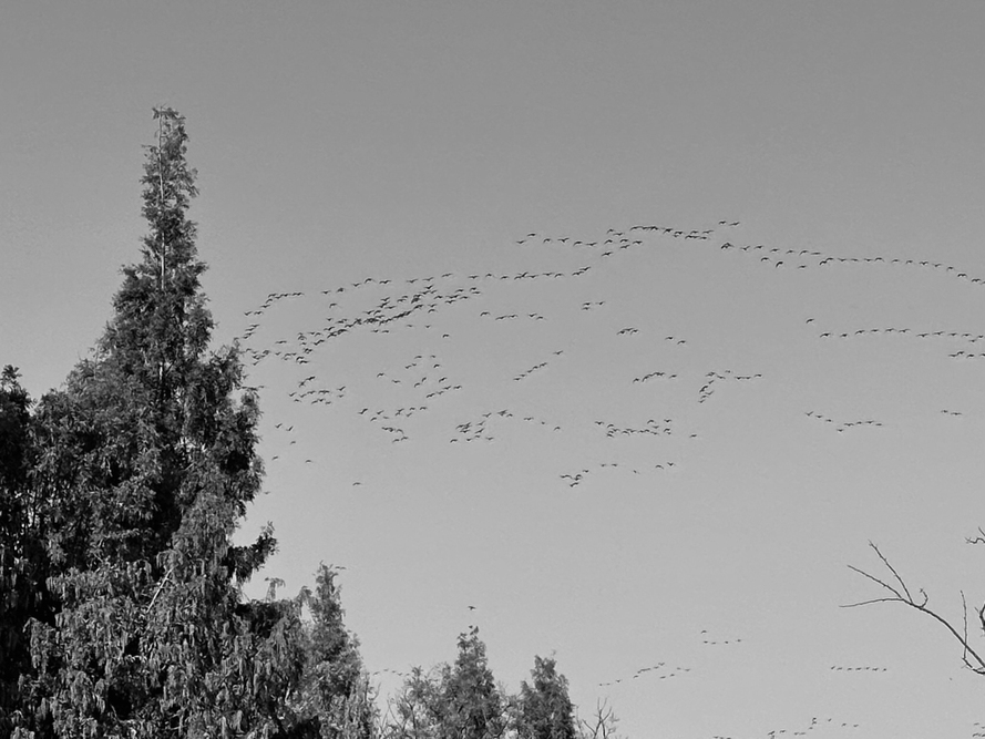 시끄러운 소리에 올려다보니 하늘을 가득 메운 철새들.