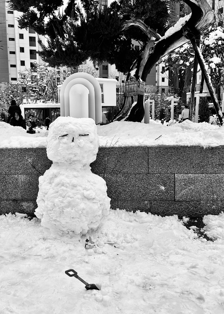 동네 친구, 누나를 만나 눈사람이나 만들어야지.