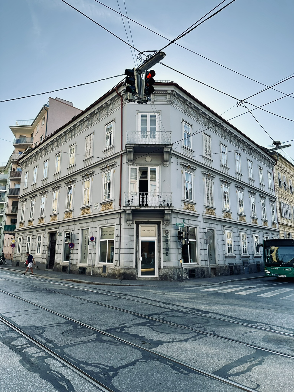 모서리에 있는 발코니에서 아래를 내려다보는 기분은 어떨까.