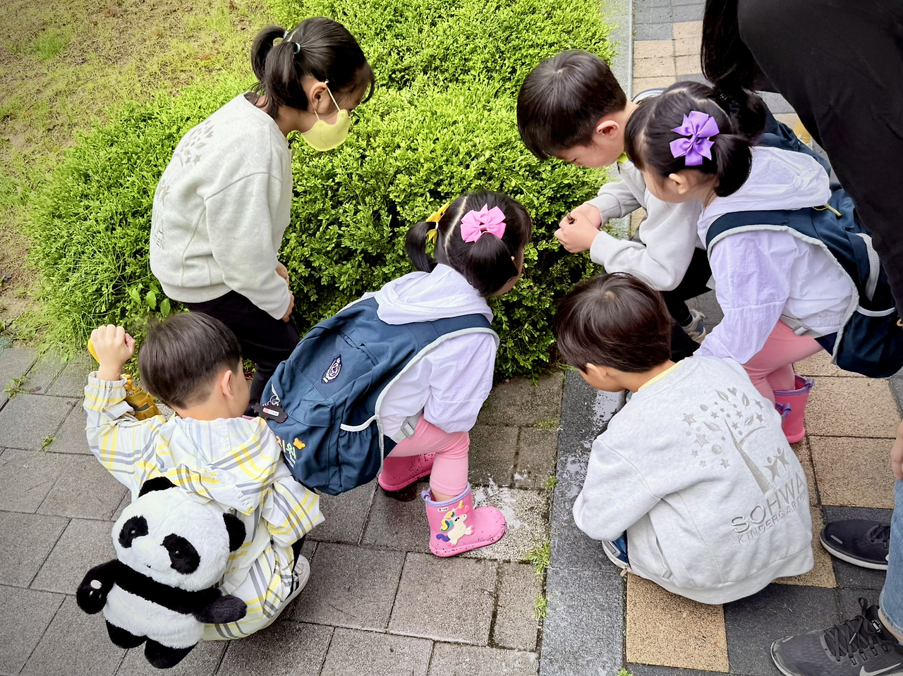 비가 그쳐 집으로 돌아가는 길에 만난 아이들.
