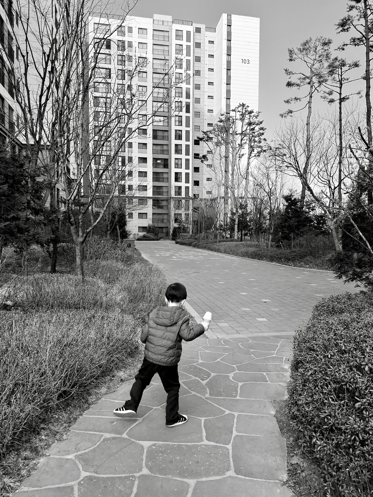하원 버스에 내려 집으로 가는 길.