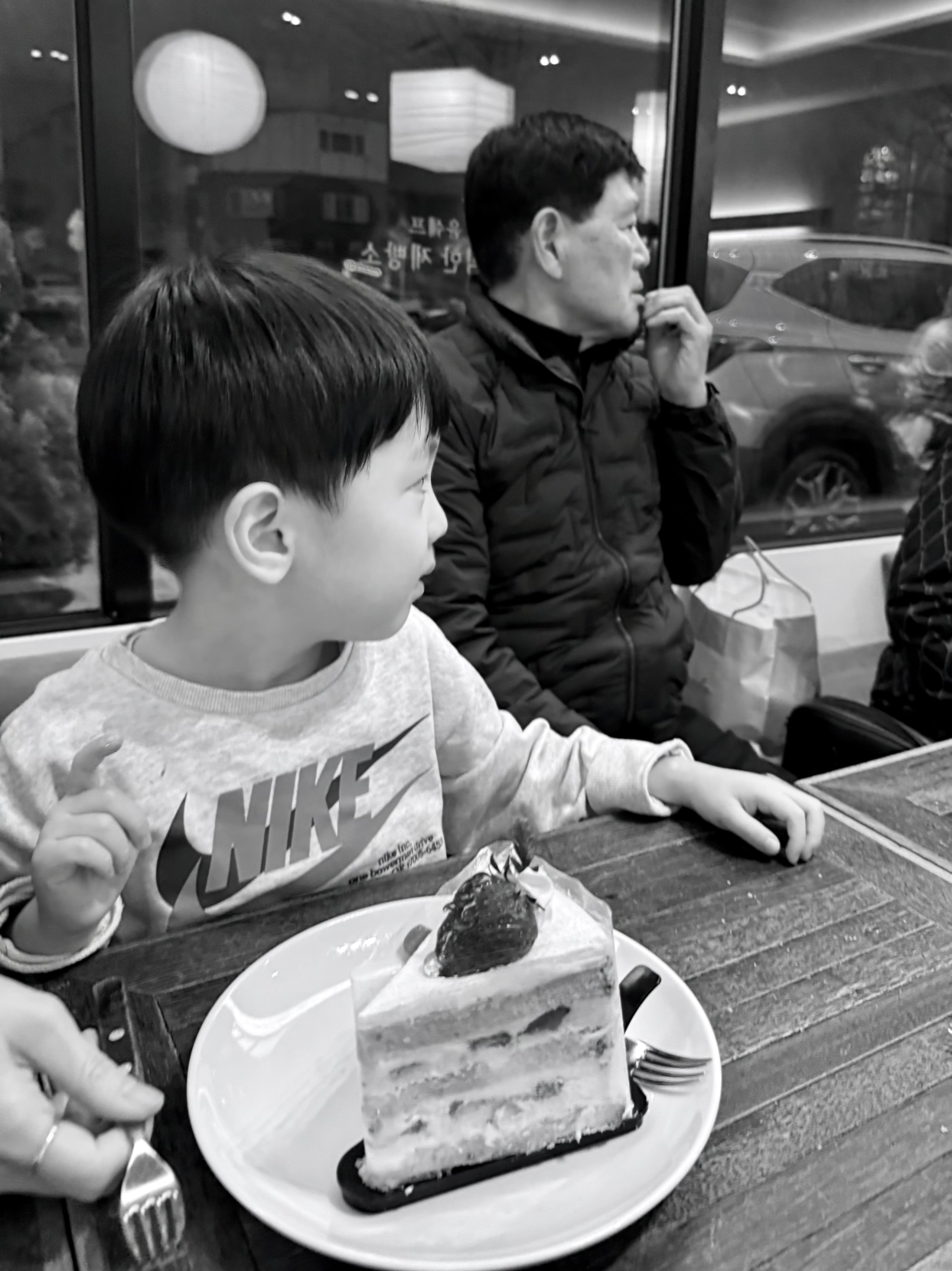딸기 케이크의 딸기를 좋아하는 손자를 위해 베이커리 카페행.
