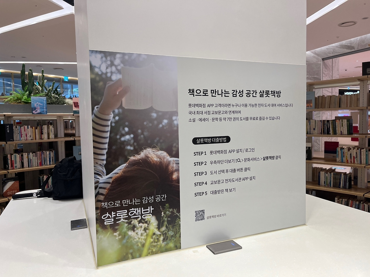 다시 한번 생각한다. 백화점 내에 서점도 아니고 쉼터를 활용한 독서라.. 다소 신박한 조합 아닌가? 공간으로써의 제1의 목적을 달성했다면 변주를 주는 것 또한 괜찮은 시도이자 방법이다. 결국, 그 공간에 머무르는 것에는 변함이 없으니 말이다. 본질을 잃지 않았다면 다소 그 중심에서 벗어난 과감한 시도는 다시 본질로 이어주며 본질을 더욱 강화할 수 있는 매개체가 되지 않을까?