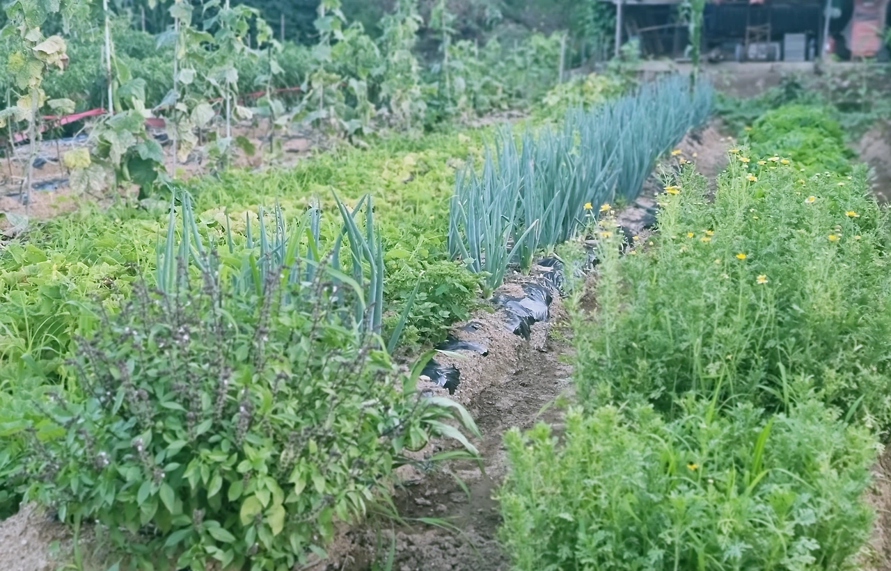 '미친 새끼'라 칭하는 아저씨의 고향 친구분이 갖다 준 모종들은 종류가 참 많고 많았다. 친구분이 헷갈리는 바람에 청양고추 모종만 100개 넘개 가져온 탓에 매운내가 진동한다며 웃었다. 다이소에서 이것저것 씨앗을 사다 심어 보기도 했다고 한다. 초보 농부가 온 마음으로 키워낸 다양한 야채들은 서툴지만 풍성하게 자랐고, 그는 우리에게 가장 좋은 수확물을 골라 내어주었다.