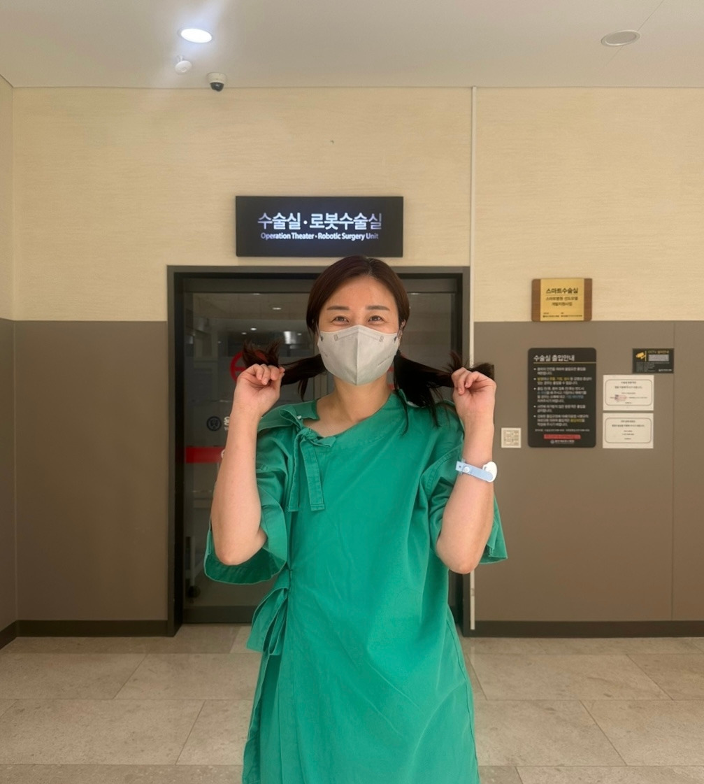 입원 기간 동안 보호자로 있던 동생은 내가 신고 있던 슬리퍼를 챙기기 위해 따라나섰고 수술실 앞에서 양갈래 머리를 양쪽으로 치켜든 내 모습이 우습다며 카메라를 들었다. 그런 동생이 있어 입원기간 내내 조금의 불안도 더해지지 않았고 담담하게 이 순간을 맞이할 수 있었다.
