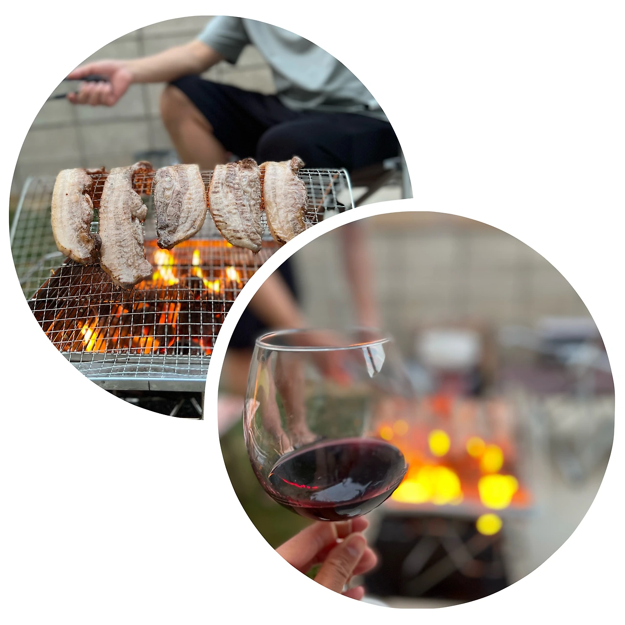 캠핑 마니아였던 우리는 최소한의 캠핑 장비만 남겨 두고 모두 당근과 중고나라에 내놓았다. 그 후, 자주 마당 캠핑을 즐기고 있다. 캠핑장 비용, 유류비 등의 절약은 물론이고 큰 텐트와 장비들을 펼쳐 놓고 정리하는 시간과 노력이 줄어들어 훨씬 편해지기도 했다. 가끔 자연이 그리울 땐 그늘막 하나 들고 당일 캠핑을 즐기러 가기도 한다. 그동안 캠핑의 하이라이트라고 생각했던 바비큐와 불멍은 이제 집에서 얼마든지 할 수 있기 때문이다.