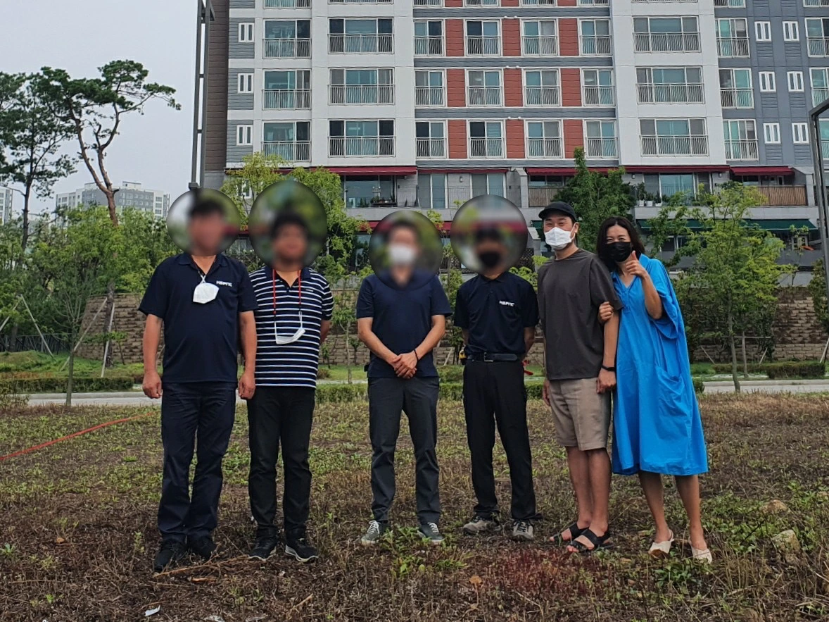 그때 건축사님께서 이렇게 제안하셨다. "우리 다 같이 공사 시작 전에 사진 한 장 찍을까요? 저도 그동안 일하면서 이런 경우는 처음입니다. 허허." 잠시 후 처음이라 수줍어하시던 현장 소장님께서도, 나는 사진 같은 건 안 찍는다며 손사래를 치시던 시공사 대표님께서도 '우리 땅' 위에 지어질 '우리 집'을 응원하는 한결같은 마음을 담아 나란히 그날을 기록했다.