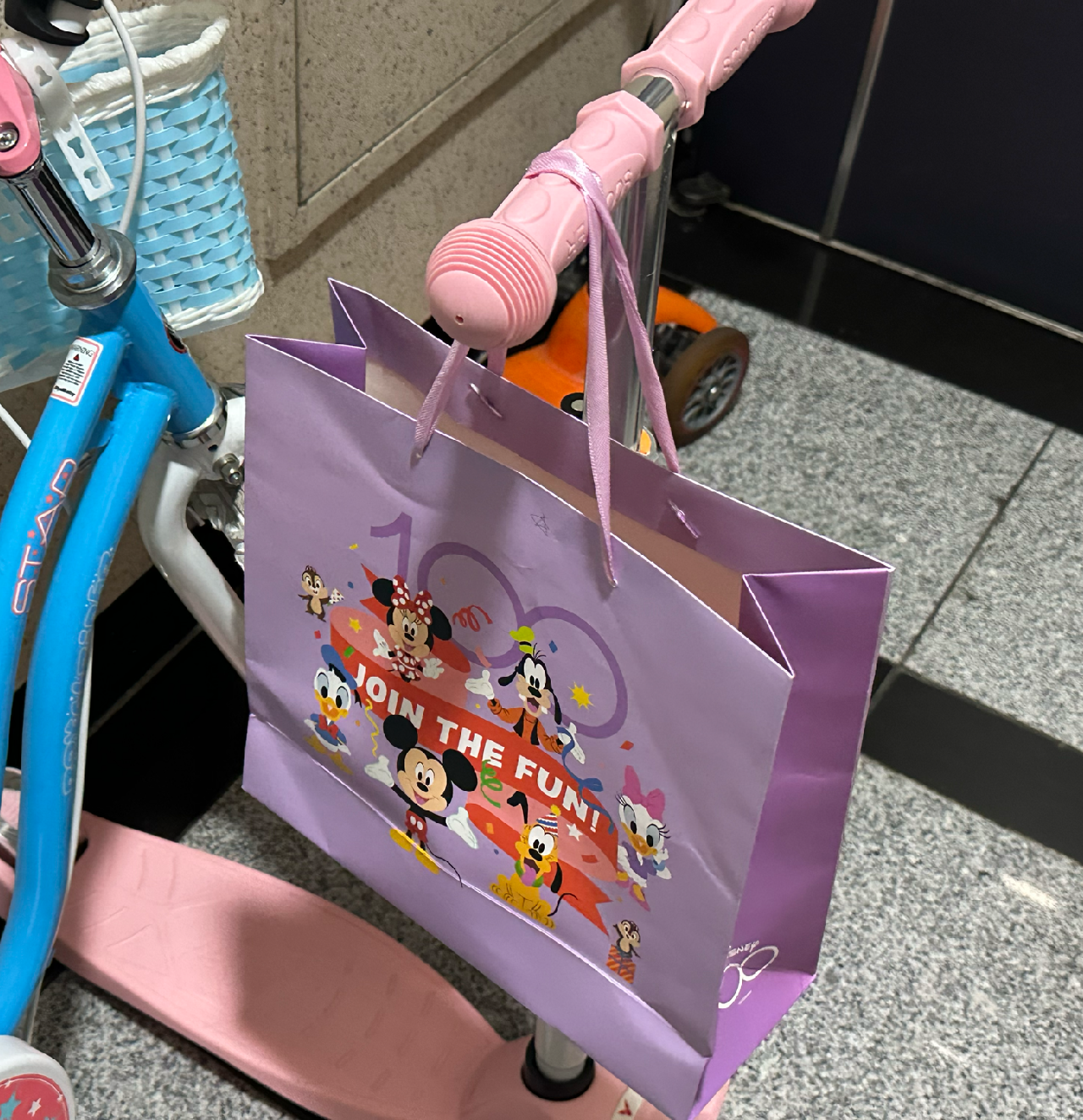 종이 가방 5개를 각자 집에 걸어두고 오는 중
