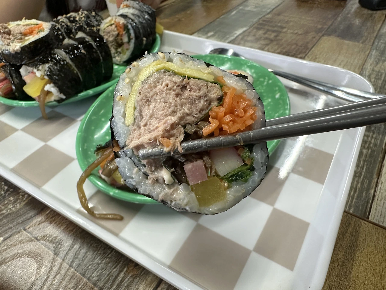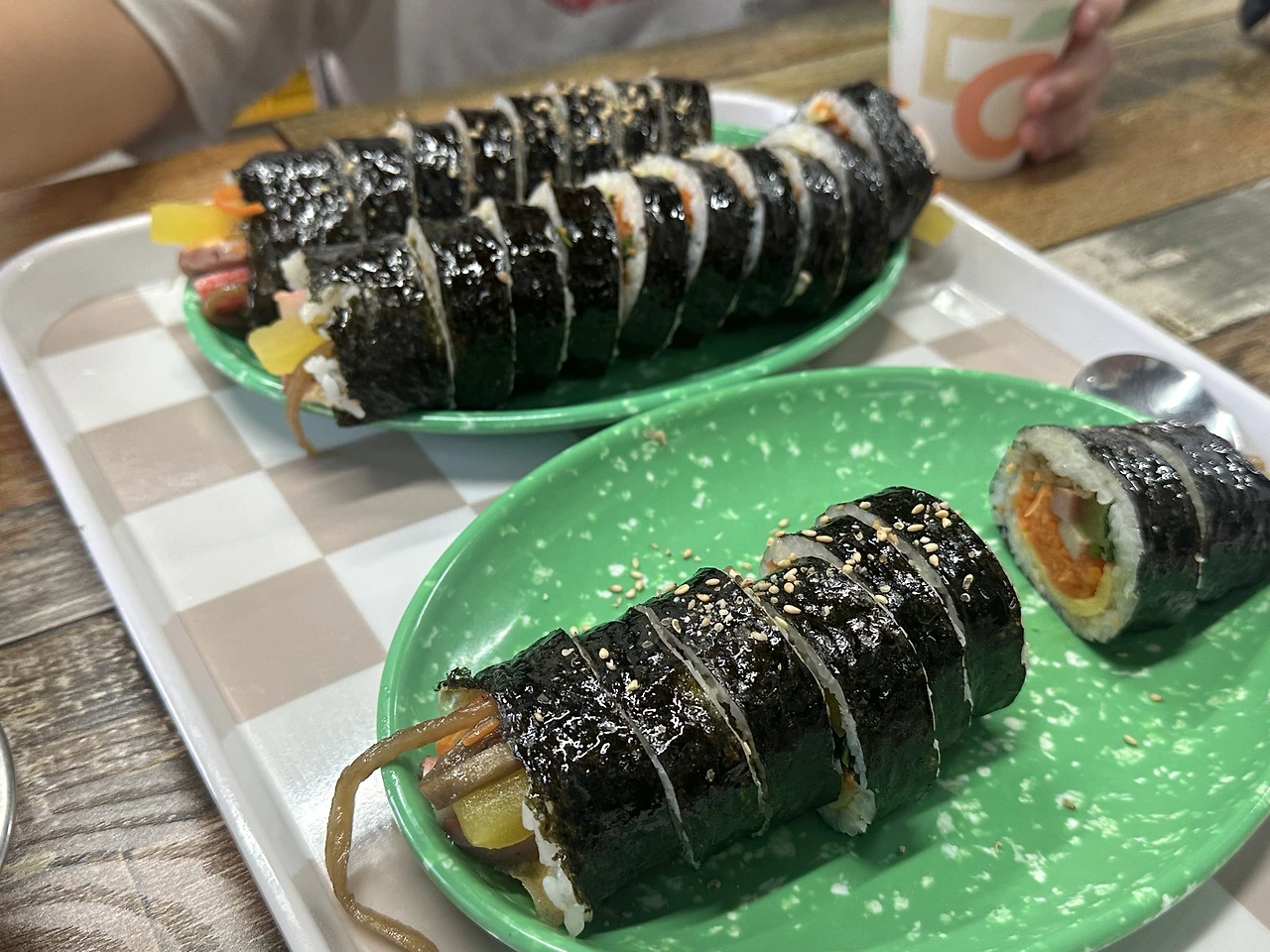 아이들은 집을 처음 보는 순간이었습니다. 아이들은 "여기가 우리가 살 집이야?"라고 말하고는 텅 빈 집안에서도 놀이를 찾아 놀기에 바빴습니다. 차에 부산에서 마지막 날 받아온 선물이 한가득입니다. 아이들이 그 선물을 뜯으며 한참 시간을 보냅니다. 그 시간 동안 캐리어에 챙겨 온 각종 청소도구를 꺼내 청소하기 시작했습니다. 이층집이긴 하지만 평수가 넓지 않아 청소하는 데 많은 시간이 들지는 않았습니다. 선물 정리하기에 열을 올리던 아이들도 곧 청소하기에 합류합니다. 온 가족이 함께 청소를 한 덕분에 입주청소(?)는 금방 끝이 났습니다. 관리를 해주시는 분이 있어서 그런지 집안은 깨끗하게 관리되어 있더라고요. 청소를 끝내니 배가 무척 고팠습니다. 아이들에게 무엇을 먹고 싶은지 물어보니 김밥을 먹고 싶다고 말합니다. 다행히 일찍부터 김밥을 파는 곳이 있어 그곳으로 갔습니다. 바깥에서는 매장 안에 먹을 수 있는 공간이 있는지 보이지 않더라고요. 비바람이 부는데 남편이 먼저 매장에서 식사가 가능한지 확인을 하고 옵니다. 매장에서 식사가 가능한 걸 확인하고, 써도 소용이 없는 우산을 아이들에게 씌우고 김밥집으로 향했습니다. 김밥이 얼마나 맛있었는지 모릅니다. 이렇게 맛있는 김밥집이 동네에 있다는 걸 알게 되자 마음이 든든해집니다.