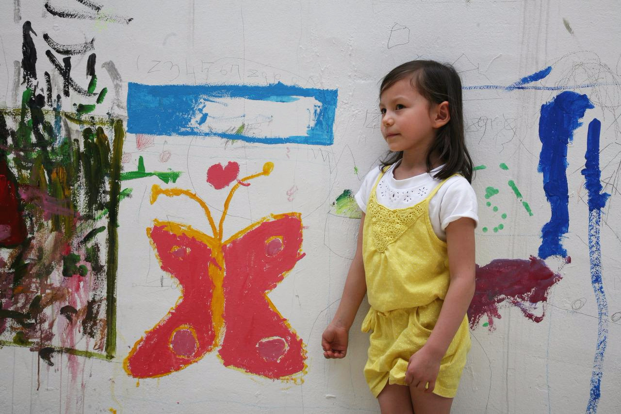일단 붓을 잡고 마음껏 놀리라고 했더니... 제멋대로 벽이 꾸며지고 있네요. 흐흐