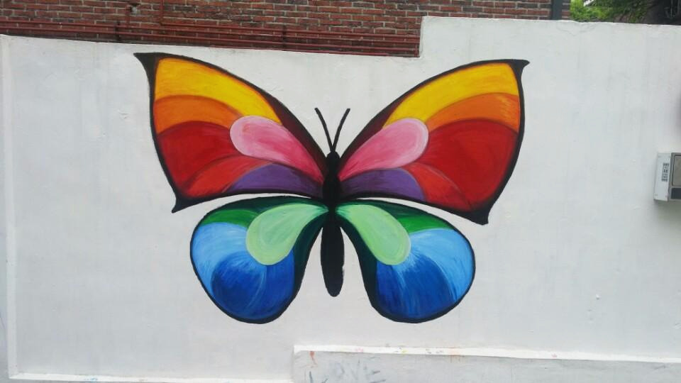 골목에 난 커다란 벽에는 나비를 그리기로 했습니다.