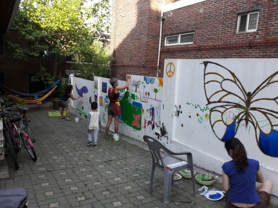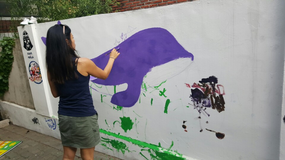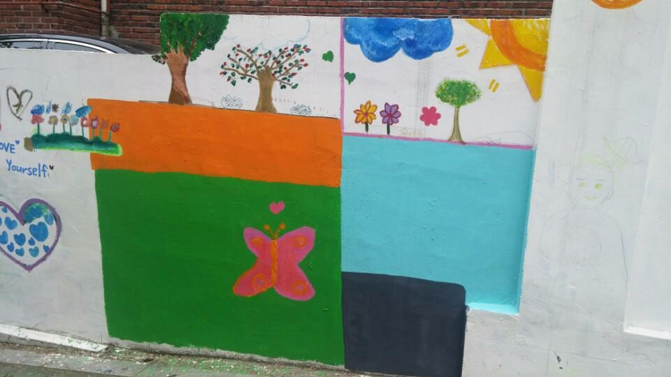 하루 만에 벽화를 완성하지는 못했어요. 조금씩 마무리를 하기로 했답니다. 그래도 지금까지 완성된 벽화를 소개할게요!