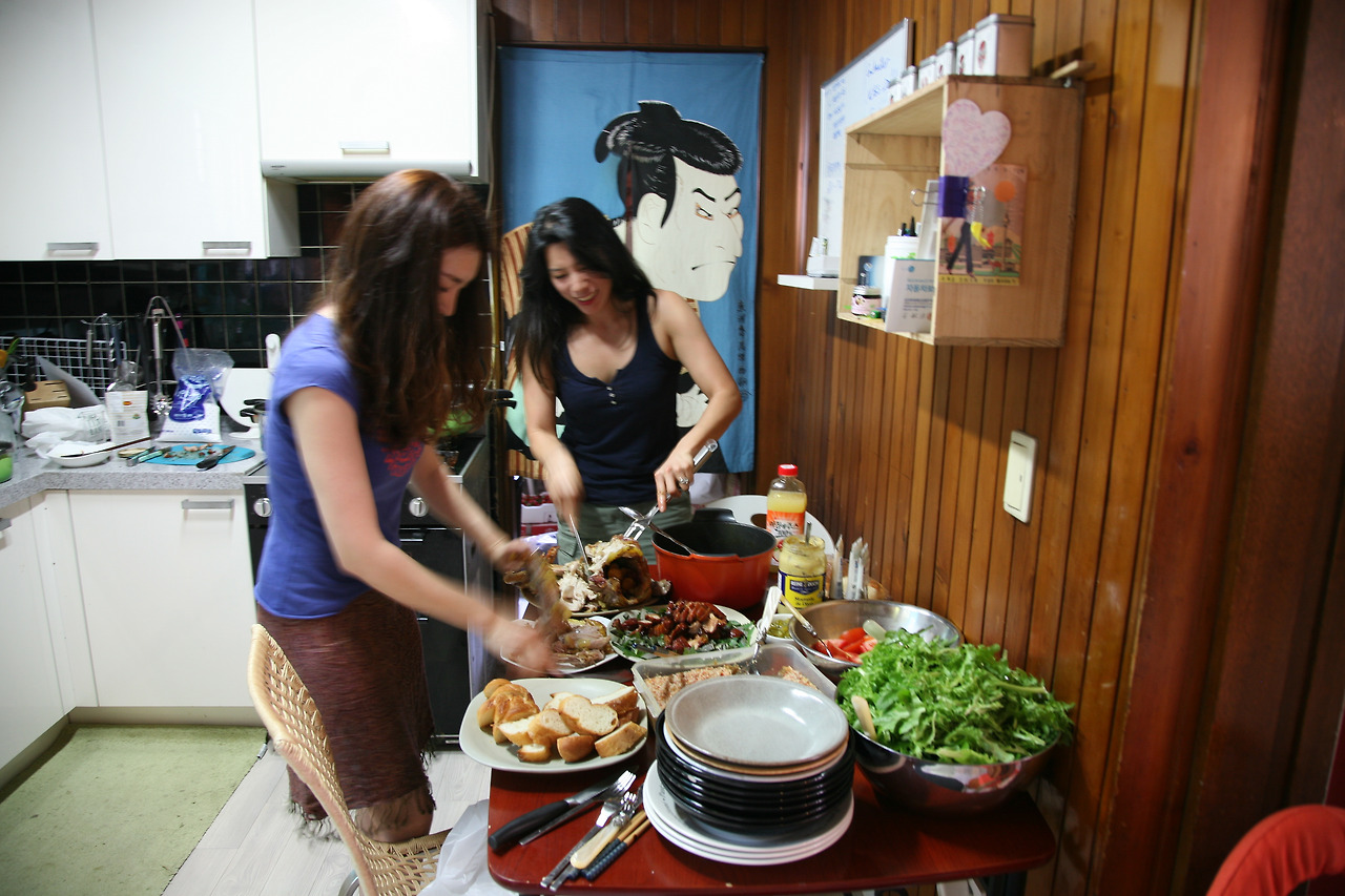 점심시간이 되어 음식 준비도 열심히 하고요. 다 같이 먹으니까 정말 맛있었어요!