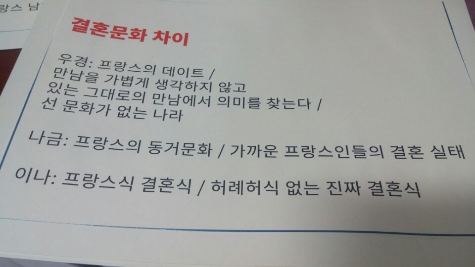 "국제결혼은 늘 슬프기도 하다. 프랑스나 한국 가족 중에 하나는 떨어져있기 때문에 늘 그리운 대상이다."