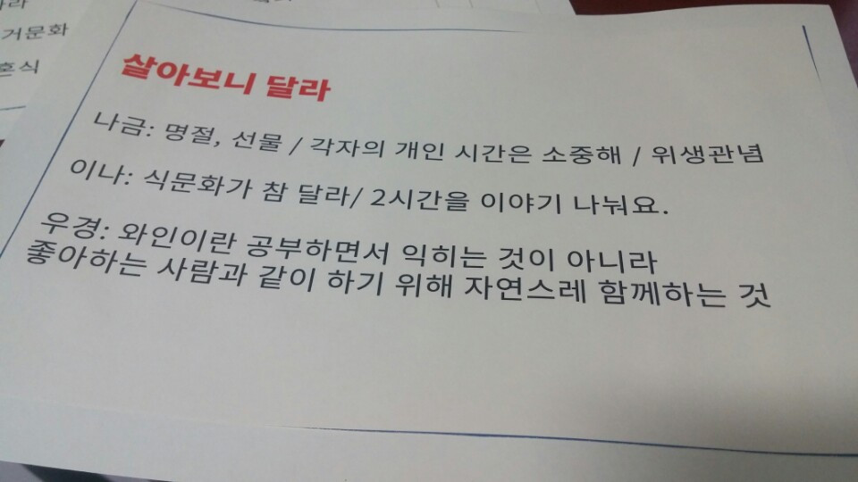 이번 만남을 준비하면서, 다른 문화를 가진 사람과 산다는 게 재미있기도 하고 어렵기도 한 일이라는걸 다시 느꼈어요.