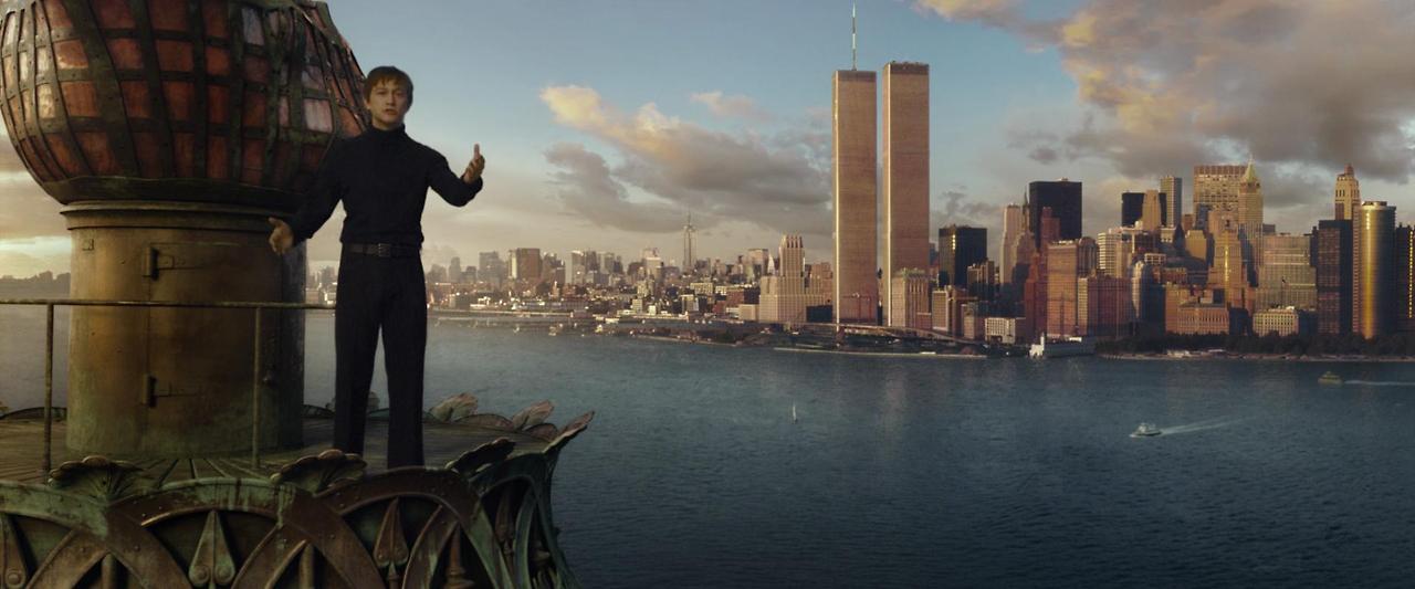따라서 <로봇 드림>에서 베르헤르는 현재의 뉴욕과 만들어내는 상이성의 감각을 위해 구태여 ‘과거의’ 뉴욕을 그곳에 배치시킨다. 여기에 이러한 과거의 뉴욕과 함께 재생되는 것은 베르헤르의 과거를 이루고 있을 그의 시네마적 환상들이다. 도그가 핼러윈 분장을 벗겨낼 때, 물을 쏟아내는 샤워기의 쇼트와 가짜 피가 수채구멍으로 흘러들어가는 쇼트는 명백히 <싸이코>의 그것이다. 또한 봄에 날릴 연을 사기 위해 들른 차이나 타운의 어떠한 가게는 즉시 <그렘린>의 장면을 떠오르게 한다. 스페인에서 태어났지만 NYU에서 영화에 대해 수학한 그에게 있어 뉴욕은 영화에 대한 기억으로 가득찬 공간이다. 베르헤르는 그렇게 뉴욕의 ‘몸통’을 시네마의 이미지로 구축한다. 하지만 이런 씨네필적 기억들은 결코 한 도시의 얼굴이 되어줄 수 없다. 따라서 베르헤르는 정확히 뉴욕의 얼굴이 될 하나의 이미지를 가져다 놓는다. 지금의 뉴욕과 상이성을 만들어낼 수 있는 오브제로서의 세계무역센터 건물 말이다.