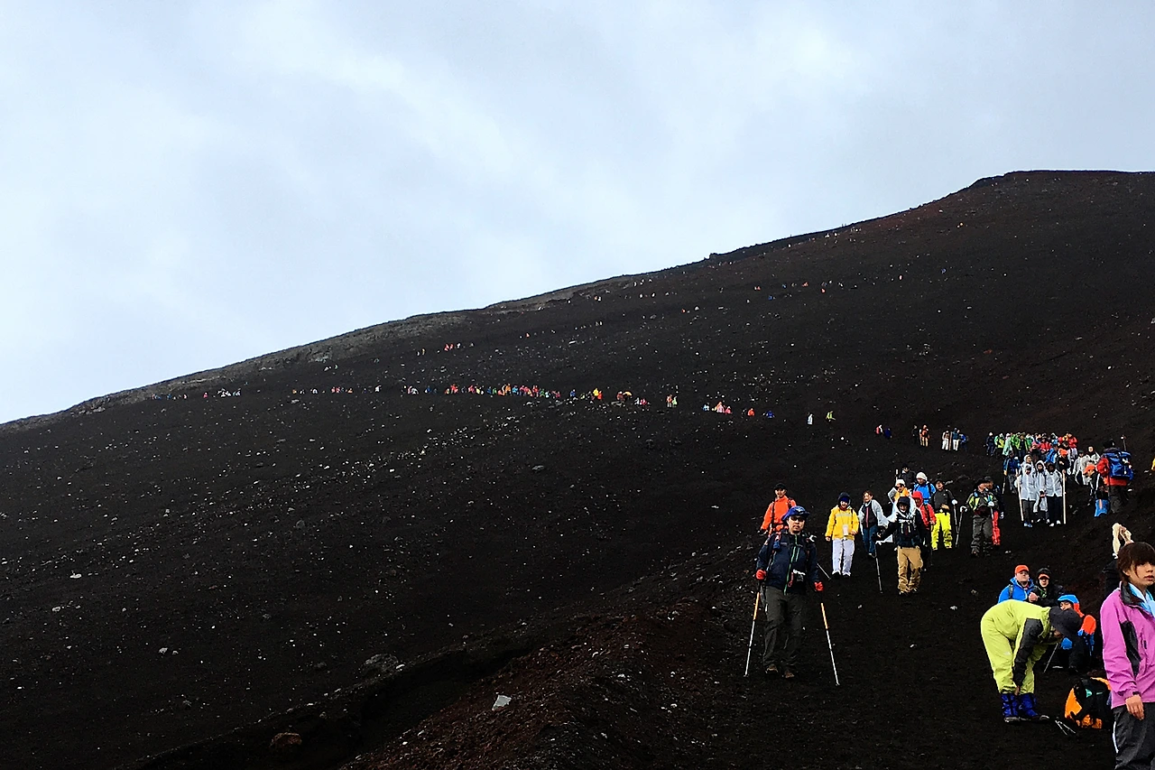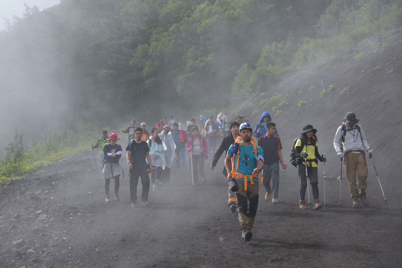 후지산에서 하산은 올라온 길과는 전혀 다른 길로 하산을 해야 한다. 거의 일방통행식이다.