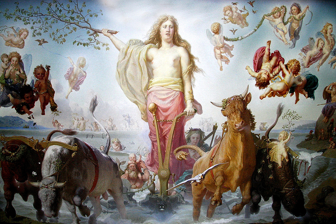 지상을 풍요롭게 만드는 ‘번영의 여신’과 ‘쟁기질’이라는 행위와의 관계는 북유럽과 다른 게르만 민족의 기독교 이전 시대에 존재하는 설화에 공통적으로 나타나는 현상이다. 대개의 경우 지상의 풍요로움을 기원하는 여신들은 언제나 하늘의 신과 ‘hieros gamos’(신성한 결혼)을 통해 ‘땅을 비옥하게’ 한다.
