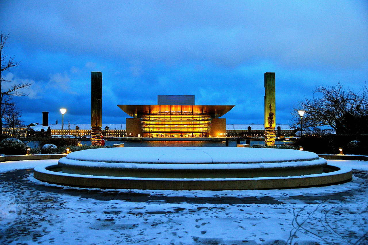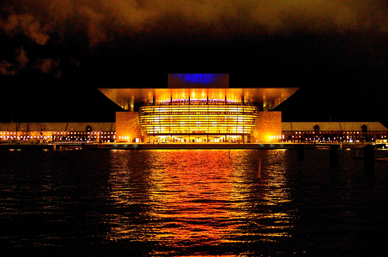 * 세계 최고의 음향시설을 자랑하는 코펜하겐 오페라 극장, 물가에 비치는 밤 풍경이 한폭의 그림 같다.