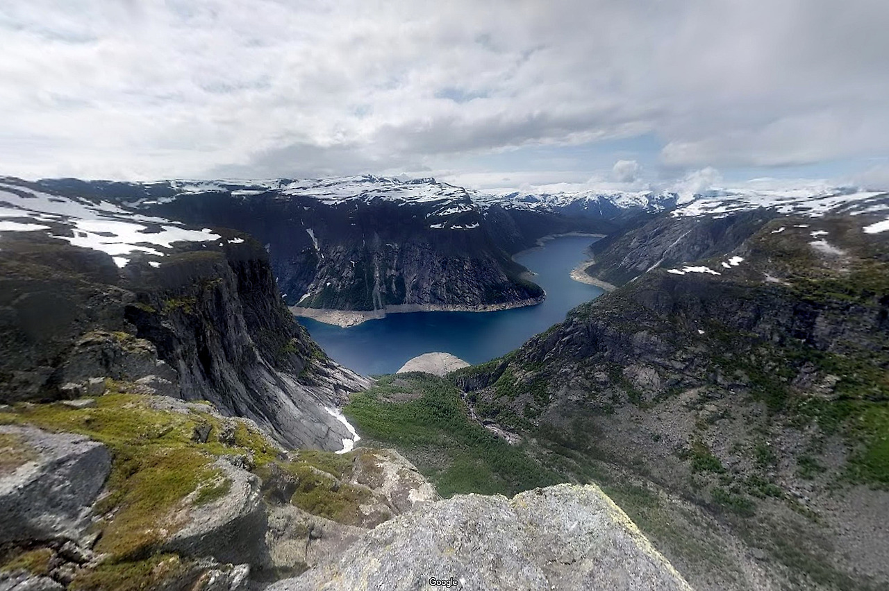 피요르드에 흐르는 물은 검은색으로 침묵하고 있다. 금방이라도 폭풍이 몰아칠듯한 자태는 고독과 침울함을 보여주지만 그 누구의 침범도 허락하지 않는다. 그 누구도 이곳을 빠져나갈 수 없다. 배를 타고 모험을 할 수 있을지 몰라도 그곳을 빠져나간다는 것을 장담할 수 없다. 더구나 높이 천 미터에 이르는 두 개의 암벽 사이에 놓여 있는 바위는 마치 바다로 가는 통로 같다.“(* Victor Hugo, Toiler of the Sea 중에서)