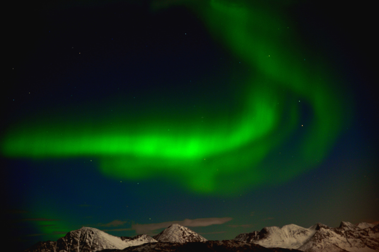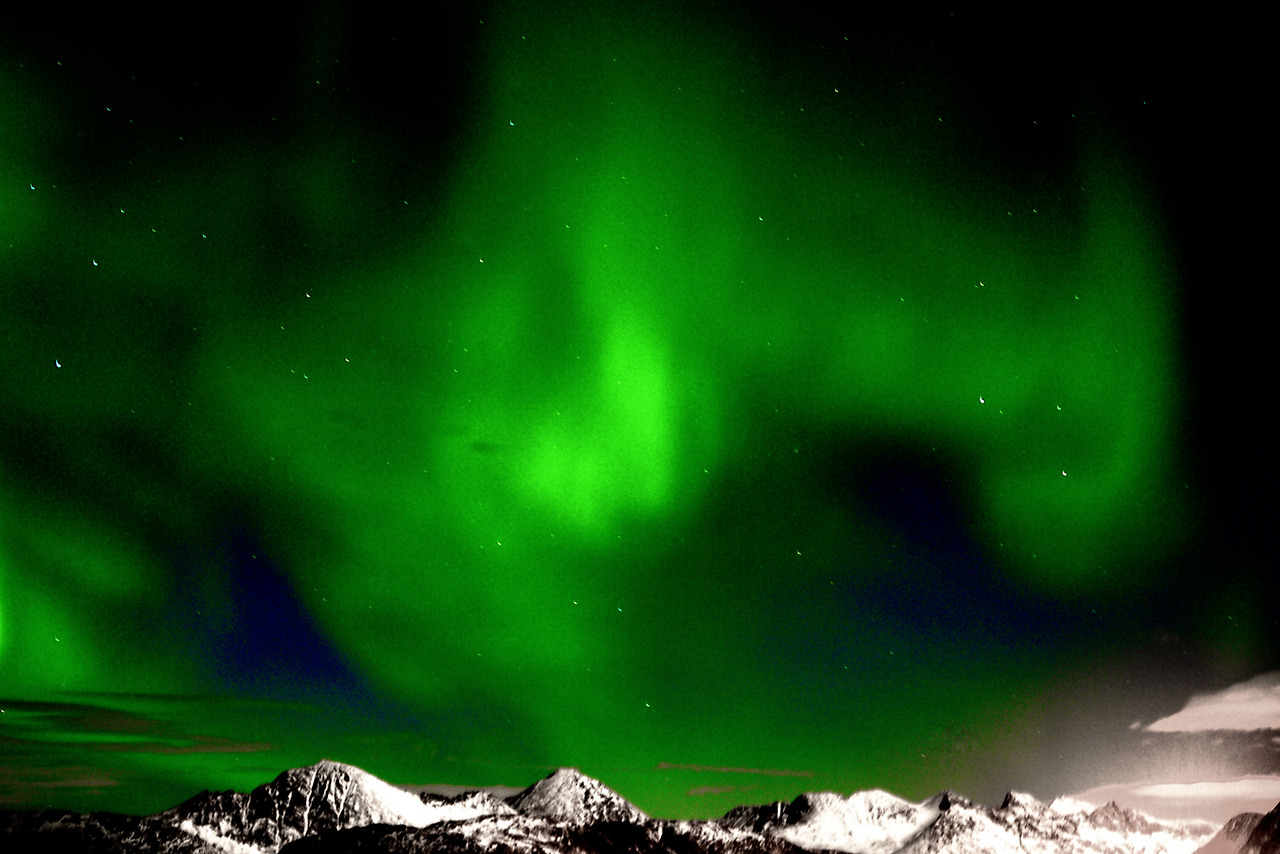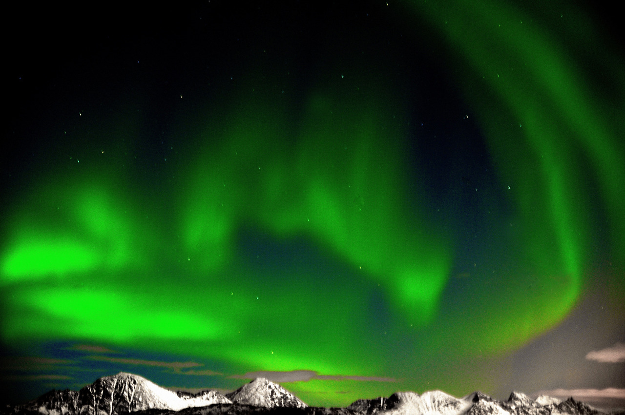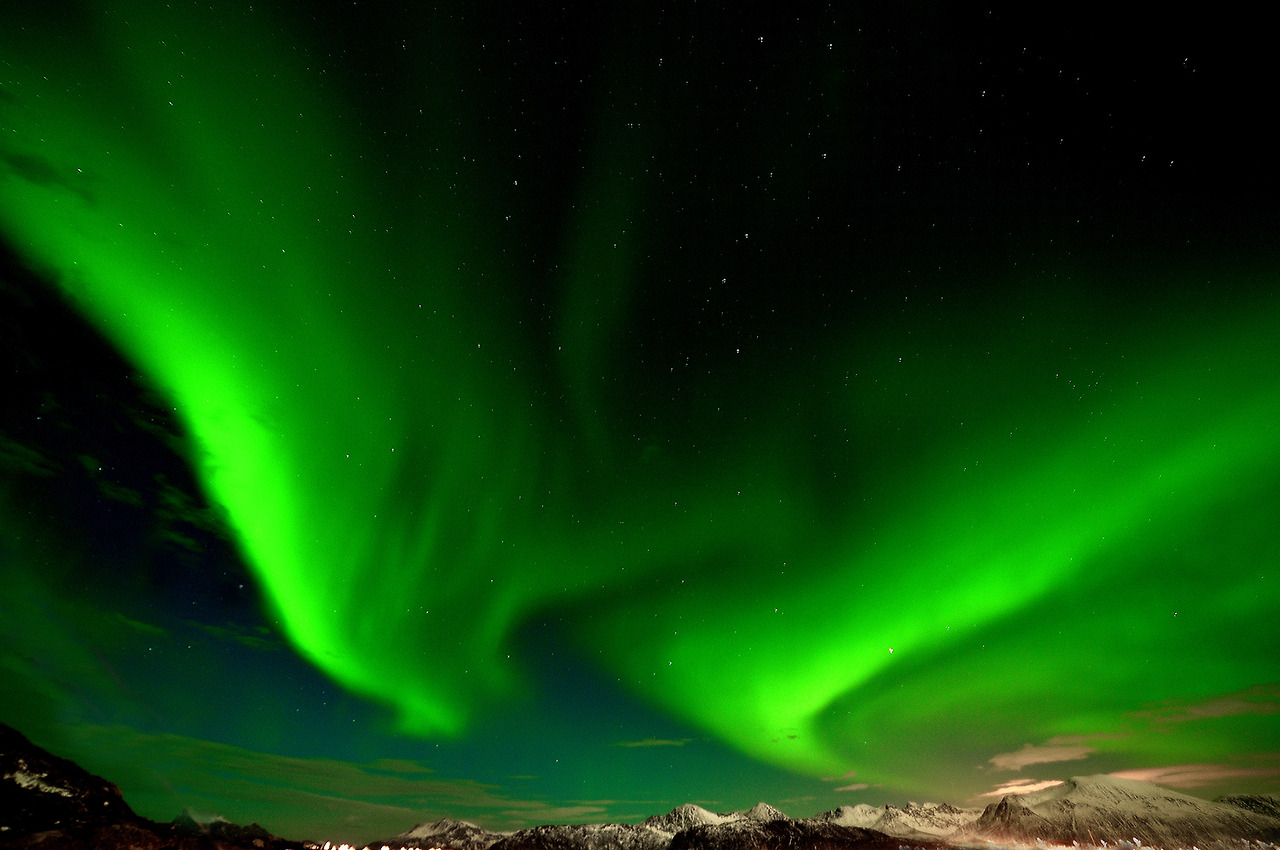 노르웨이에서는 북위 68도에 위치한 로포텐(Lofoten)과, 북위 70도에 위치한 트롬쇠(Tromsø)가 북극권에 위치해 있어 오로라를 잘 볼 수 있는 지역이다. 백야가 진행되는 여름철만 아니라면 언제나 오로라를 볼 수 있을 거라는 생각에 들뜨지 않을 수 없다. 그러나 고약한 날씨가 생각보다 오래, 자주 이 지역을 괴롭히고 있으니 부디 겨울왕국의 여신께서 트롬쇠에서 좋은 날씨를 점지해 주시기만을 고대해 본다.