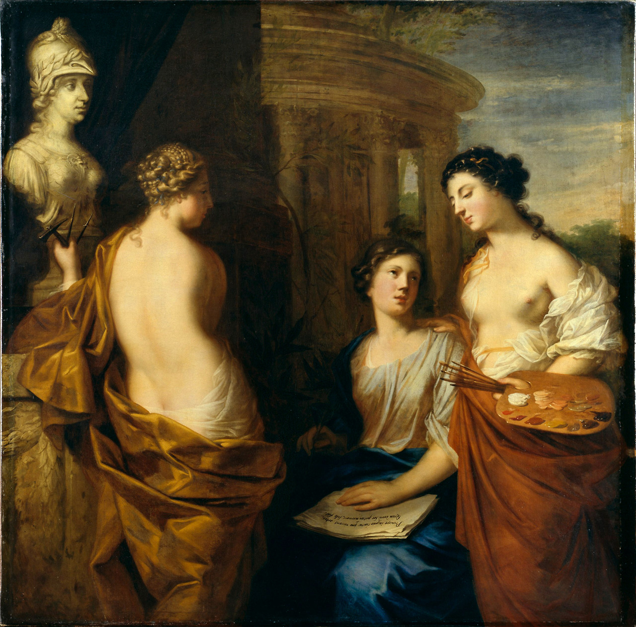 1) 크리스티나 여왕과 데카르트가 토론하는 모습, 2) 크리스티나 여왕 초상화, 3) 크리스티나 여왕 그림