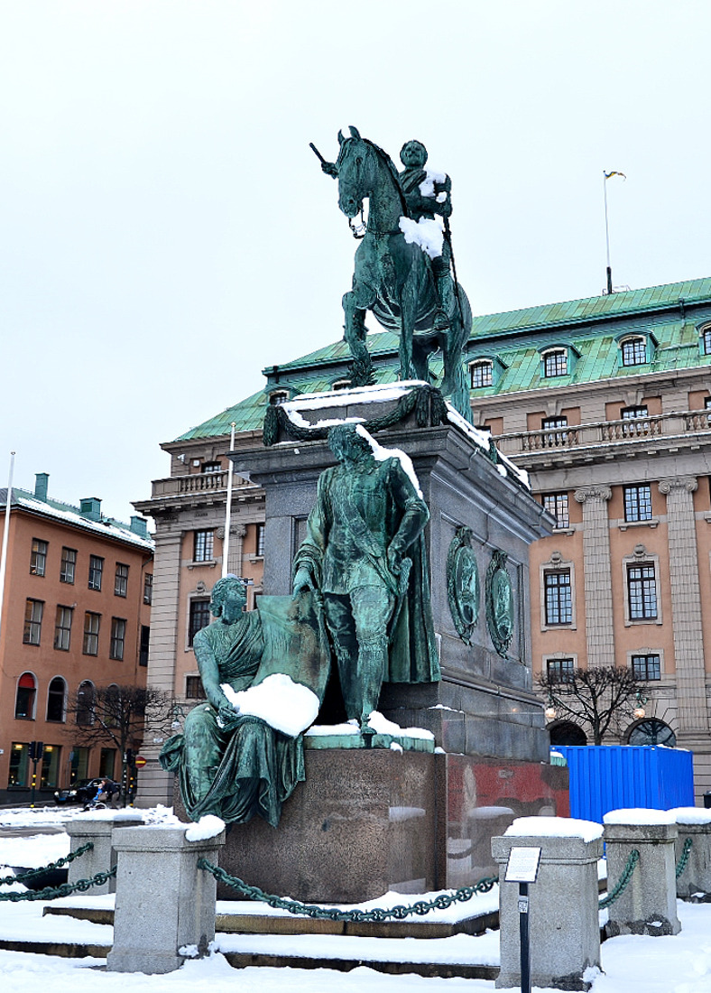 1) 국립오페라극장 앞에 있는 구스타브 2세 동상, 2) 독일 뤼첸 전투 시작 전 기도하는 구스타브 2세(국립박물관 소장), 3) 구스타브 2세 초상화(국립박물관 소장)