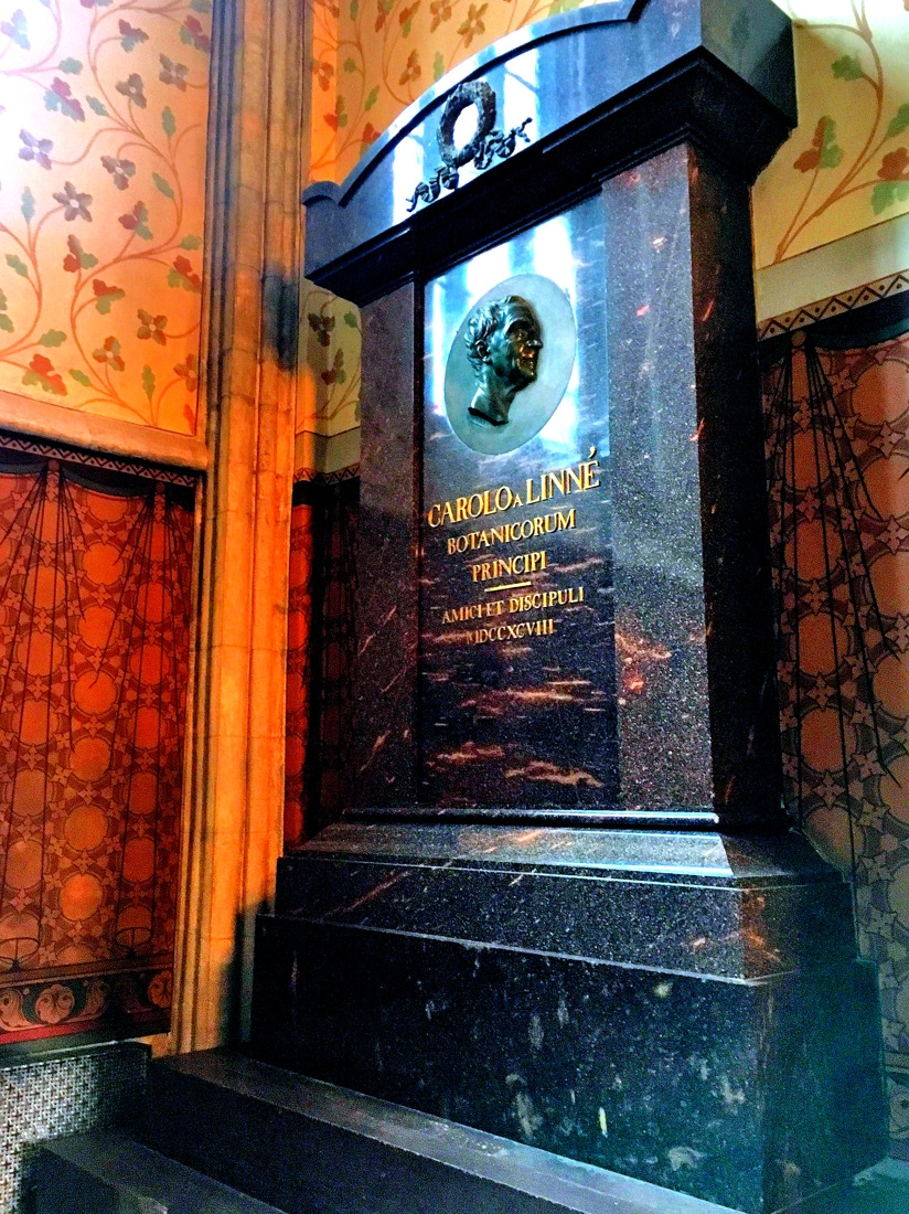 또 다른 무덤은, ‘식물 분류법’을 만든 세계적인 식물학자 카를 린네의 무덤이다. 성당에 들어서면 왼쪽 맨 뒤편 바닥에 그의 무덤 표식이 있고, 그 왼쪽 공간에 별도의 린네를 기리는 공간을 마련해 놓았다.