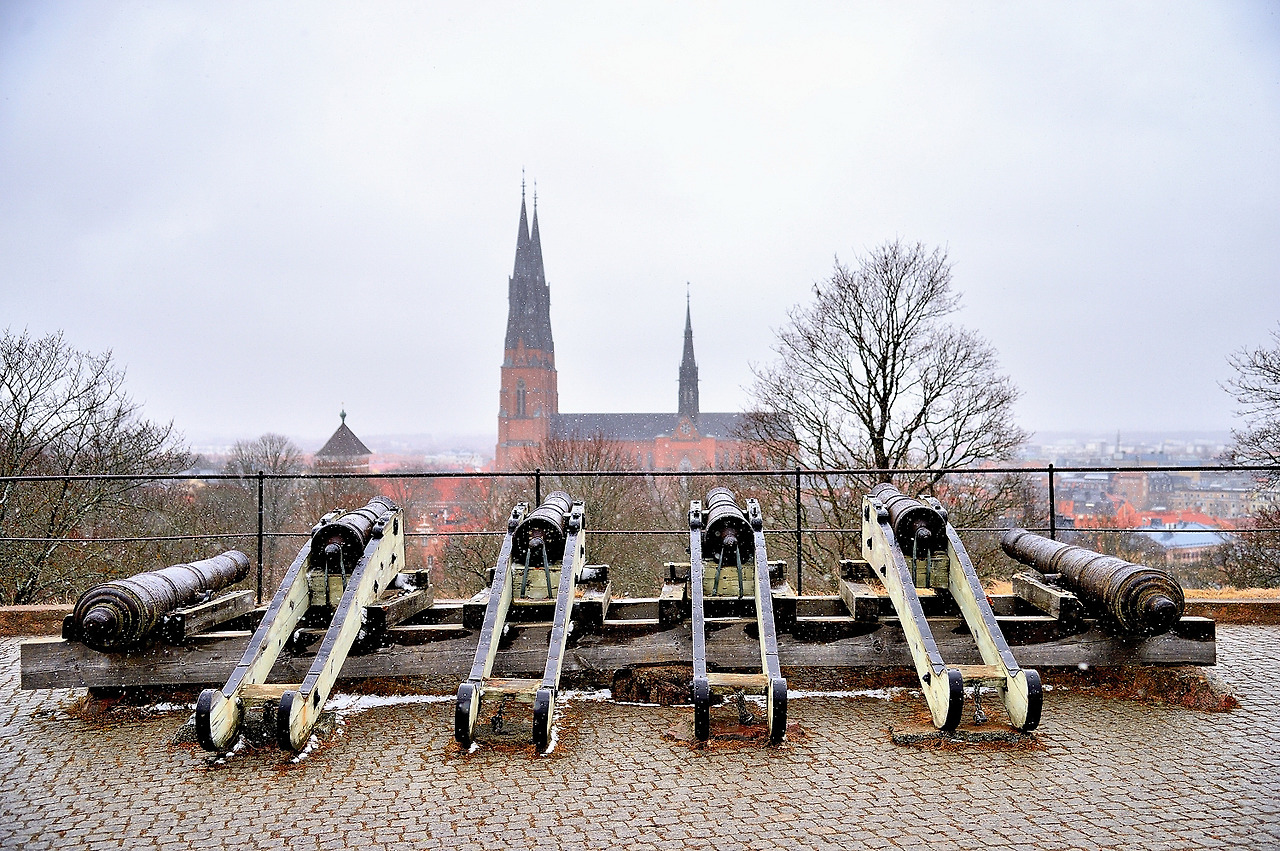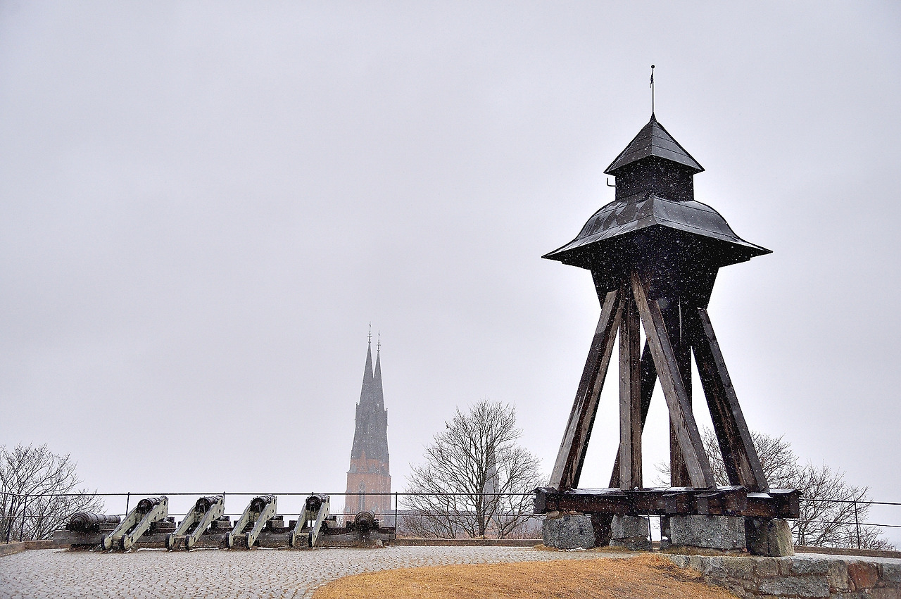 * 구스타브 바사가 설치한 '왕의 대포들'과 구스타브 바사 왕의 석상, 그리고 거닐라 종탑(거닐라 종은 1588년 요한 3세 왕(King Johan III)의 부인 거닐라 여왕(Queen Gunilla)이 웁살라 교회에 기증한 것이다. 그러나 화재가 난 후 종은 지금의 장소로 옮겼고 지금은 웁살라의 봄을 알리는 역할을 하고 있다.
