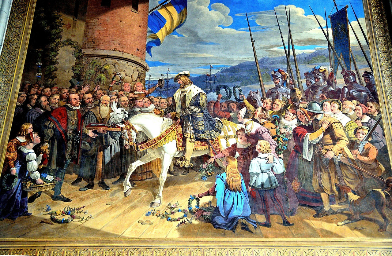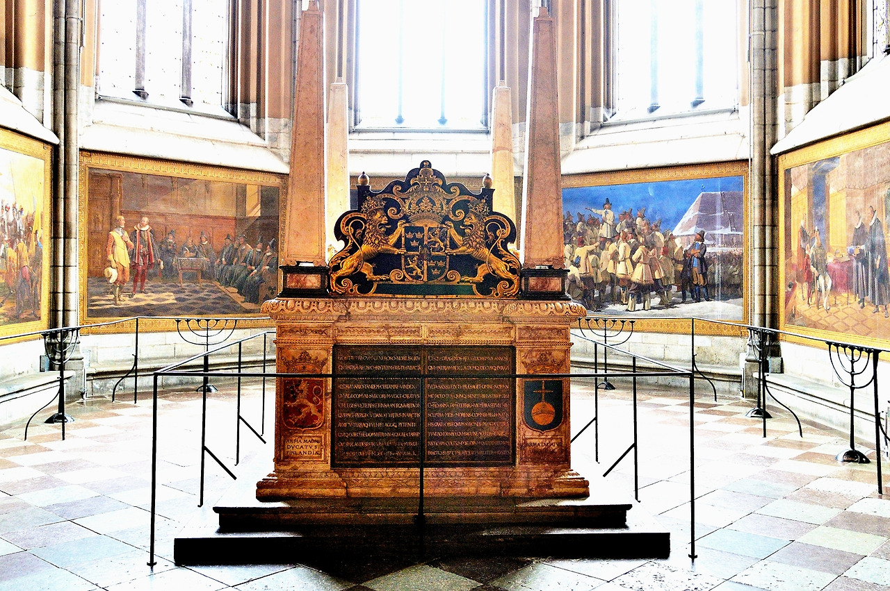 * 웁살라 대성당 내부에 있는 구스타브 바사의 석관과, 석관 주변에 있는 대형 그림 중 하나