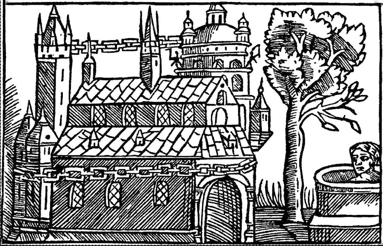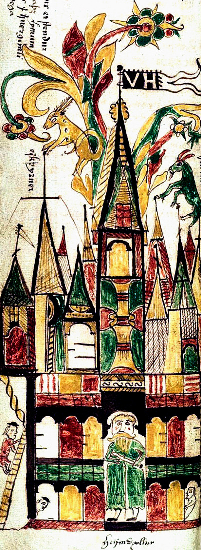 《함부르크 주교들의 사적》에 있는 웁살라 신전 삽화가 눈길을 끈다. 삽화 맨 오른쪽에 사람 하나가 샘에 던져져 제물로 바쳐진 것이 묘사되어 있다. 이 그림의 제목은 ‘웁살라의 영목’이다. 영목(靈木)은 11세기 하반기에 스웨덴 웁살라 신전 앞에 서 있던 나무를 가리킨다.(* 이 나무가 자작나무인지 주목나무인지 정확히 알려지지 않았다.)