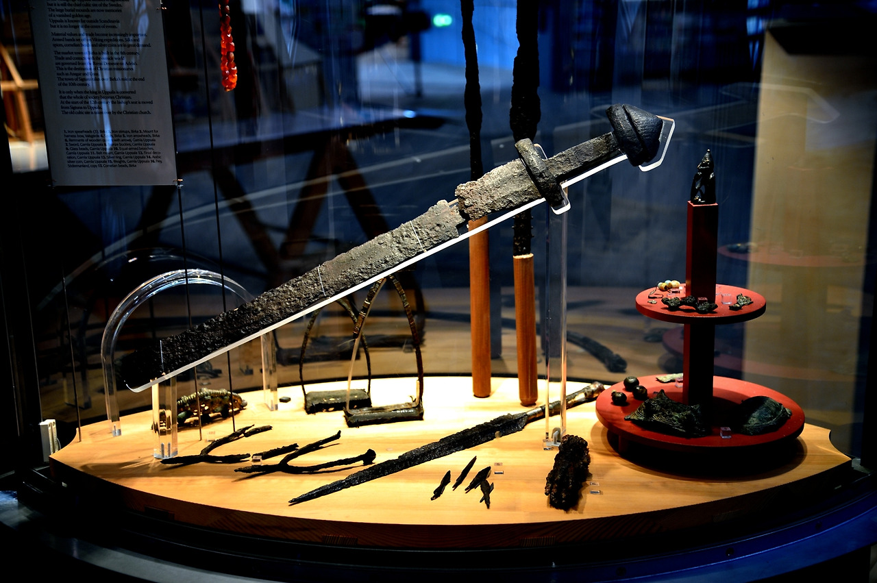 * 박물관에 전시 중인 감라 웁살라에서 발굴된 바이킹 전사들이 사용하던 자료들