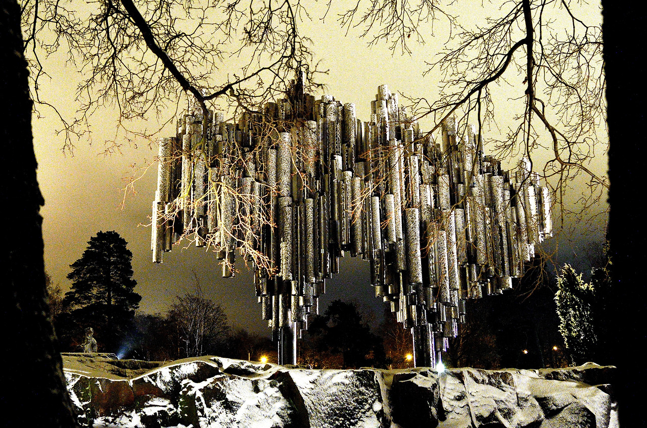 시벨리우스 기념비는 24톤의 강철관으로 된 은빛 파이프오르간 모양의 금속파이프를 연결하여 만든 조형물인데 자작나무숲을 연상시키기도 한다. 이 조형물 아래에서 바람이 지날 때 그 소리를 듣다보면 문득 핀란디아의 격렬한 음향이 울리듯한 묘한 소리를 들을 수 있어 신기하게 느껴진다. 날씨 좋은 어느 여름날 시원한 바람이 불때 이 조형물 아래에 누워 시벨리우스를 느껴볼 수 있다면 좋을 것같다.