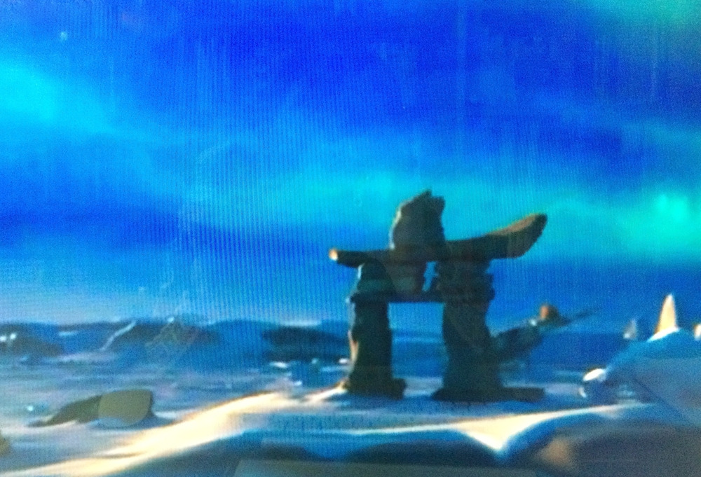 두 번째는, 마을을 그리는 장면에서는 대부분 이누쑥(Inussuk)이 보인다는 것이다. 이누쑥은 이누이트들이 사는 곳에 우리의 성황당처럼 주술적 의미를 지니고 있다. 마을과 주민들의 안녕을 기원하는 기원의 대상으로서 이누쑥은 존재하고 있다. 그래서 세드나와 이누쑥 모두 이누이트들의 삶에서 가장 기본적인 요소라는 것을 기억하면 좋겠다.